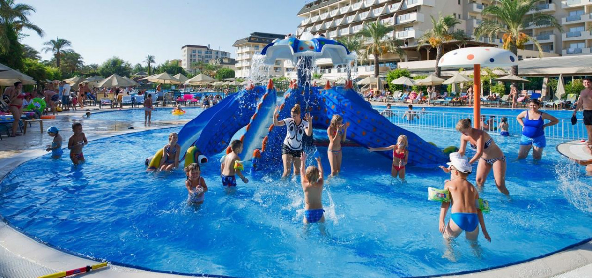 Отдыхали с 10 по 17 сентября с ребёнком 10 лет. В целом отель норм, цена качество соотвествует)) По еде - без изысков, но голодным точно не останешься. Алкоголь местный. Анимация для детей на 5. Аквапарк средненький) Но пляж стирает все минуса отеля, супер) Второй раз не поеду, но от первого не разочаровался)) В 10 метров от отеля большой рынок одежду и всего)) На честную 4.