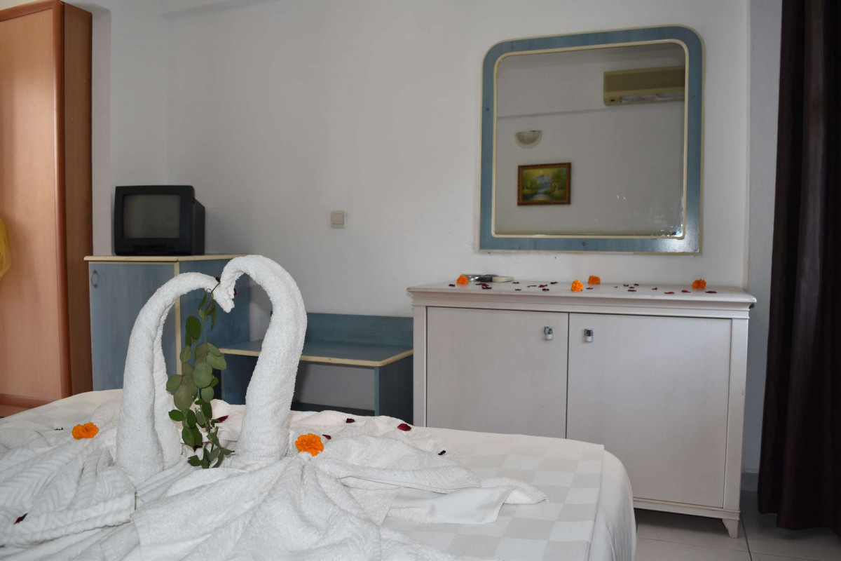 Никому не рекомендую отдыхать в этом отеле. При заселении в номере не оказалось полотенец. Пришлось идти, выбивать их. Дали только по одному на человека, и то старые, застиранные. Одно было рваное. После уборки горничные даже не думали заменять их на чистые, каждый раз приходилось идти за ними самим. Кстати, и уборка делалась только после пары напоминаний. Не буду говорить про отсутствие холодильника, хрен с ним, но в номере не было даже стаканов для воды. В телевизор был воткнут метровый кабель без штекера на другом конце. Понятно, что он не показывал вообще. Простыни короче матраса. Душевая - это одно название. Тупа углубление в полу со сливом. Кабинка или шторка отсутствуют вообще. Брызги летят во все стороны - в первый же день туалетную бумагу пришлось выкидывать. Потом уже ее прятали. Питаться в ресторане отеля просто невозможно. Ощущение, что повар умеет готовить два блюда - курицу и нагетсы, и два гарнира к ним - рис и макароны. Только в последний день была рыба, и то похоже в честь курбан-байрама. Через несколько дней после вселения пропали чайные чашки. Чай предлагалось пить из одноразовых стаканчиков, как в какой-нибудь забегаловке на вокзале. В общем еще раз - не рекомендую никому.