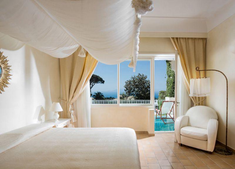 Интерьеры комфортабельных номеров Capri Palace Hotel & Spa Италия отличаются утонченным вкусом и