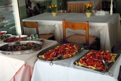 Отель Каза Еугенио расположен на возвышенности в окружении средиземноморского сада, откуда открывается замечательный вид на бухточку с пешеходной зоной, ресторанами и магазинчиками сувениров. Восхитительные завтраки, обеды и ужины накрываются на террасе с панорамным видом на море. Все блюда выполнены по старинным рецептам из местных продуктов, однако главной специализацией шефа являются воздушные десерты и выпечка. Каждые две недели в гостинице проводятся вечера барбекю и дегустация вин.