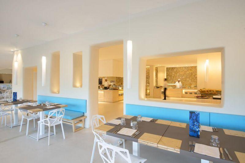 рестораны: 9 (La Terrazza в отеле Laguna (завтрак/ужин, a la carte), New Club House Restaurant в отеле Spazio Oasi (обед/ужин a la carte), La Pergola в отеле Baia (завтрак/ужин, буфет), детский ресторан Bimbi в отеле Village (обед/ужин, буфет), Le Dune у пляжа (обед a la carte), Bioaquam Pool в отеле Laguna (обед/ужин a la carte), Bouganville в отеле Village (завтрак/ужин, буфет), Whiteluna (ужин a la carte), Pizzeria in Piazza на главной площади (ужин a la carte))